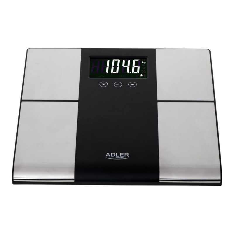 Adler | Bathroom scale with analyzer | AD 8165 | Maximum weight (capacity) 225 kg | Accuracy 100 g | Body Mass Index (BMI) measuring | Stainless steel/Black