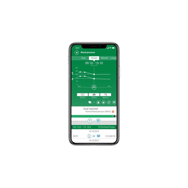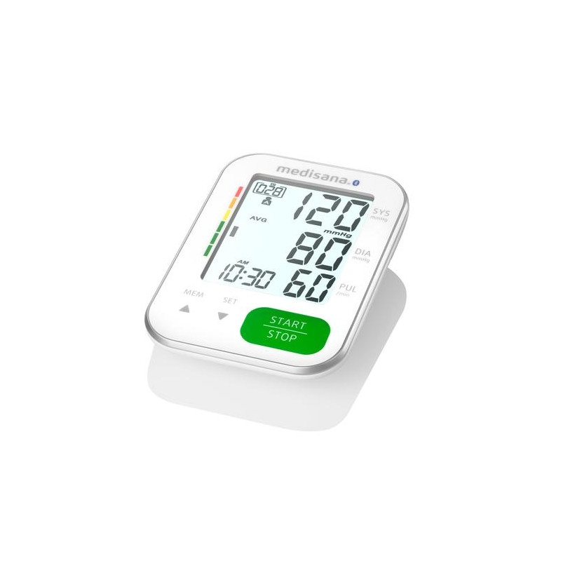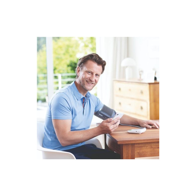 Bluetooth data transfer to the VitaDock+ appThe upper arm blood pressure monitor BU 570 connect has a extra large, easy-to-read LCD display with backlight. The integrated inflating technology ensures faster measurement results because the blood pressure is already measured during inflation of the cuff. After the measurement, the measured values are classified according to a Blood pressure classification using a traffic-light scale and can be transferred and evaluated via Bluetooth® to the VitaDock+ App or VitaDock Online