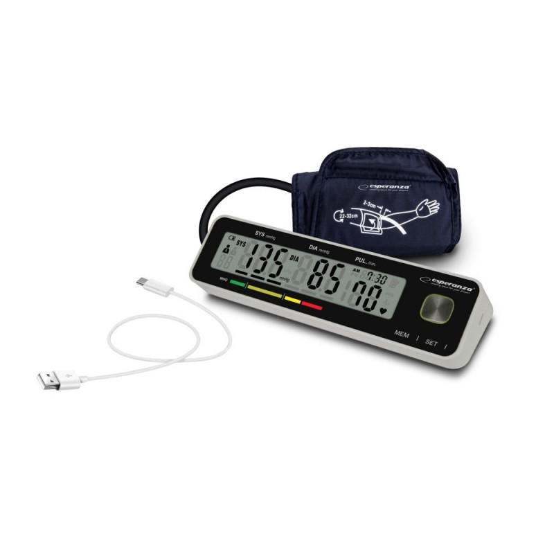 Esperanza ECB009 on poolautomaatne õlavarre vererõhuaparaat, mis mõõdab süstoolset vererõhku ja pulsisagedust. Manseti suurus on 22–32 cm. Seadmel on mälufunktsioon, mis võimaldab salvestada 2 x 99 mõõtmistulemust, ning see töötab 4 AAA patareiga või 5VDC toiteallikaga.