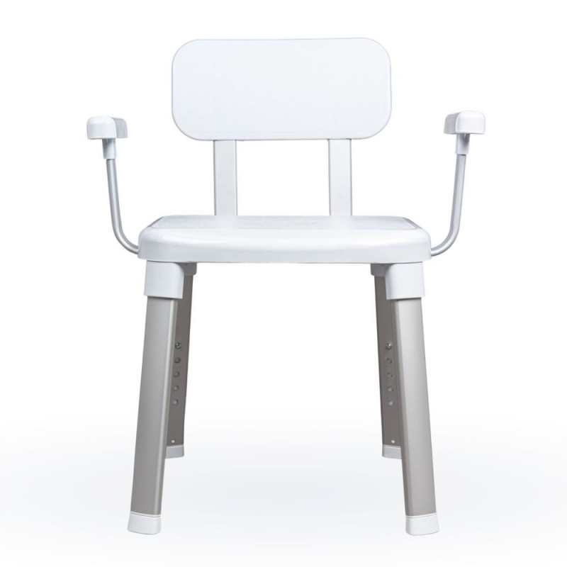 Eriti mugav seljatoe ja käetugedega vannitool on ideaalne abivahend duši all või vannis istumiseks, pakkudes suuremat turvalisust ja mugavust pesemise ajal. Selle tooli eriline eelis: kõrgust saab reguleerida viies astmes vahemikus 42–52 cm vastavalt vajadusele. Mugav ümar iste on valmistatud kvaliteetsest valgest plastikust ning talub kuni 150 kg raskust. Roostevabad alumiiniumist jalad on varustatud libisemiskindlate kummist otstega, mis tagavad stabiilsuse ja kaitsevad pinda. Tänu kergesti käsitsetavale ja vastupidavale alumiiniumkonstruktsioonile on tool kerge, kaaludes vaid 3,65 kg.