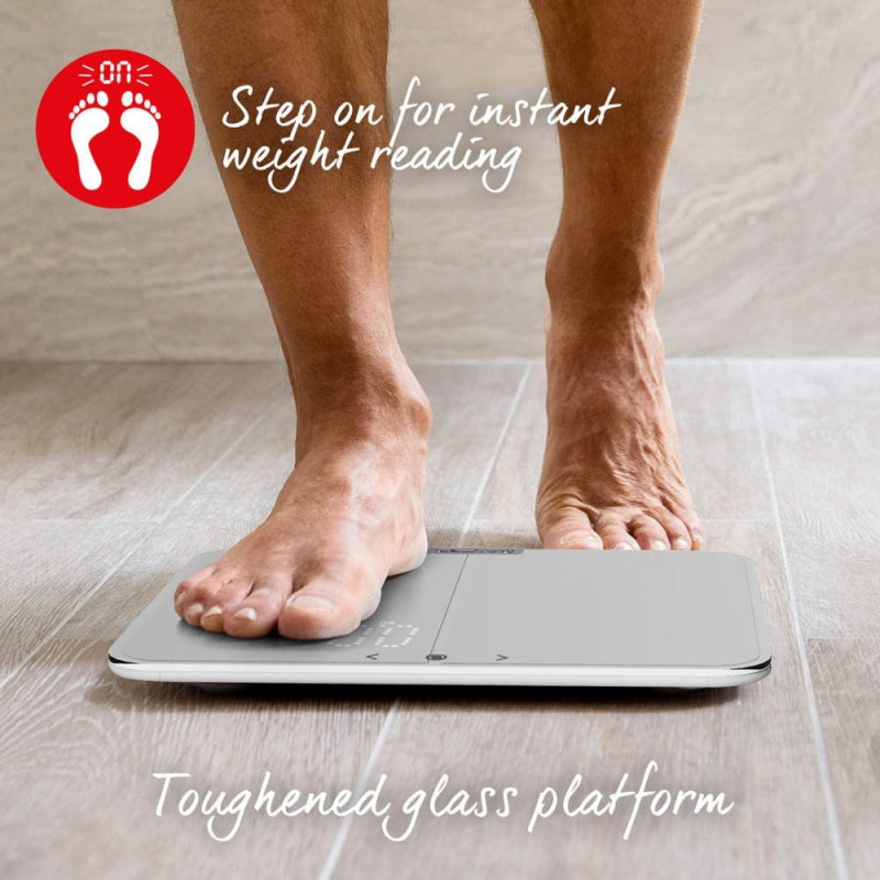 Sellel Salteri kaalul on hõlpsasti loetav ja kuni süttimiseni peidetud ekraan ning täpsed mõõtmised tollides ja meetrites kuni 180 kg. Mitmekülgsed ja praktilised kaalud mõõdavad kaalu, keharasva, kehavee, lihasmassi, KMI-d ja BMR-i, et teie kehast tõeliselt aru saada. Muljetavaldava kümne kasutaja mälu ja sportlase režiimiga analüsaatorkaalud sobivad ideaalselt kogu perele igapäevaseks kasutamiseks. Lihtne kasutada, astuge lihtsalt peale ja saate kohe kaalunäidu. Patareid on kaasas, et saaksite oma treeningteekonda koheselt alustada.