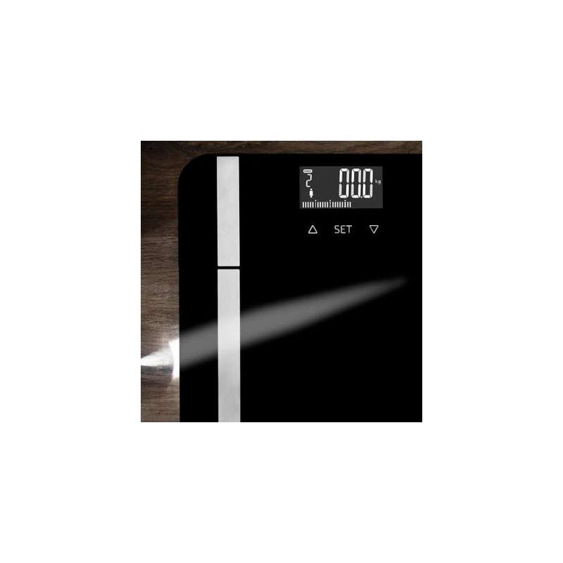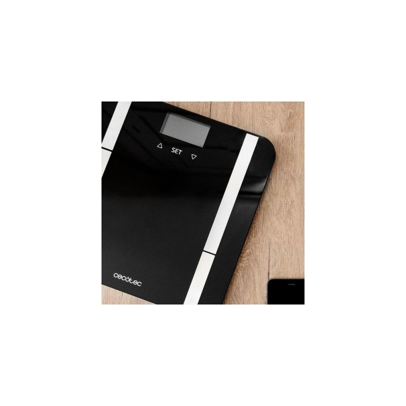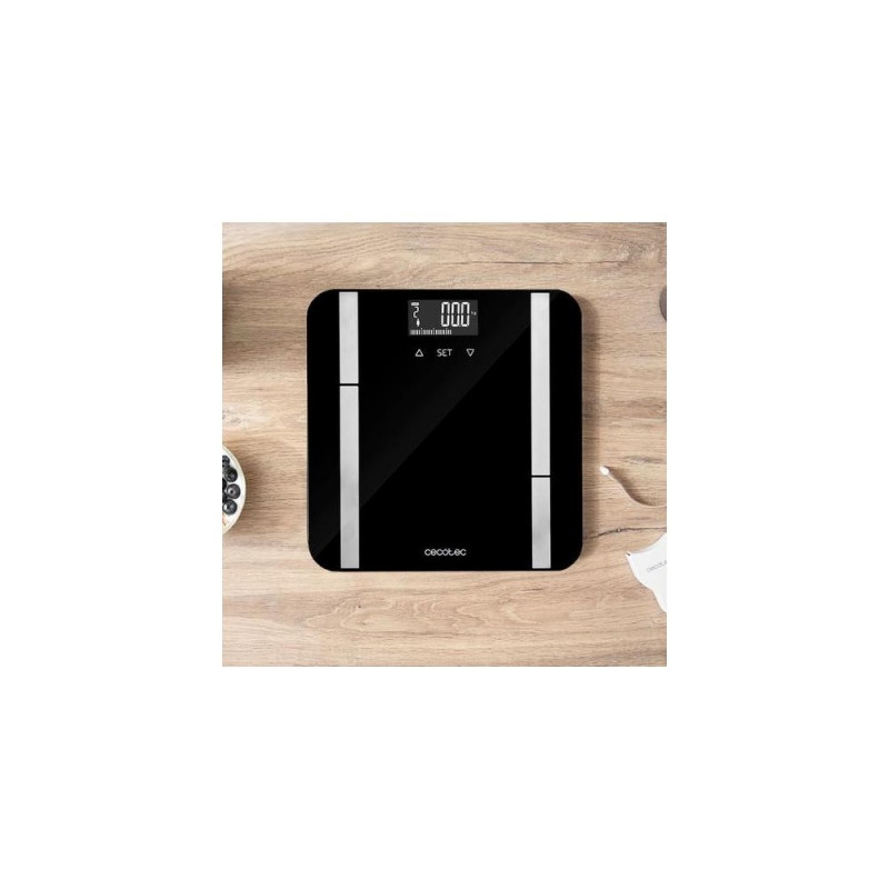 Surface Precision 9450 Full Healthy<br>Electric and digital bioimpedance bathroom scale. Smart and precise.<br>High-security platform made of tempered glass, backlit LCD display and maximum load capacity of 180 kg.<br>Ready to use. Includes measuring tape.<br>Surface Precision 9450 Full Healthy de Cecotec.<br>Large-surface digital bathroom scale, 300 x 300 mm.<br>Large measuring range, from 5 kg (11 lb) up to 180 kg (400 lb) measured by 100 g (0.2 lb), increasing its liability.<br>FourPrecision: high measuring precision thanks to its 4 sensors.<br>TenBIA: bioelectrical impendance measurement method (BIA) with full body analysis and 10-parameter precise measuring: weight, body fat, body mass index, muscule mass, bone mass, body age, water, visceral fat, basal metabolism and evaluation of physical conditions.<br>Backlit display for easier visibility of the results.<br>Multifunction EasyUsability: auto-off and auto-on when you step on the scale. Low-battery indicator that idicates when the batteries need to be changed.overload indicator when weight is over the maximum accepted.<br>UserClever: automatic identification of up to 10 user through previous recorded results.<br>SafeGrip: 4 silicone feet that improvefloor grip and add security.<br>Easy-to-read results with its LCD display, 74 x 38 mm, measured in kilos and pounds.<br>Black extra-flat platform made of high-security tempered glass, with high-quality electrodes made of stainless steel.<br>Includes measuring tape to help volume-measuring control and batteries.Cecotec Surface Precision 9450. Type: Electronic personal scale, Maximum weight capacity: 180 kg, Accuracy: 100 g. Display: LCD, Display size (HxV): 74 x 38 mm. Power source type: Battery, Battery type: AAA. Width: 300 mm, Depth: 300 mm, Weight: 1.8 kg. Quantity per pack: 1 pc(s)
