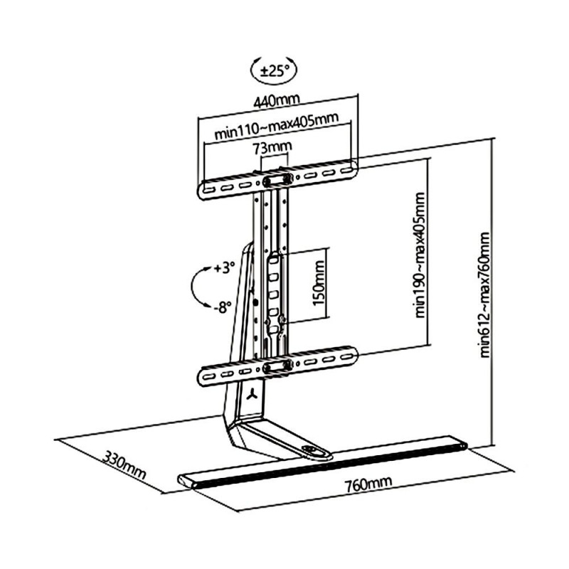 | Other features | Maximum load: up to 40 kg Tilt adjustment from +3° to -8° Swivel adjustment 25° Minimum/maximum horizontal spacing: 200/400 mm Minimum/maximum vertical distance: 200/400 mm Handle height adjustment from 61.2 to 76 cm Robust, durable construction RGB LED b |