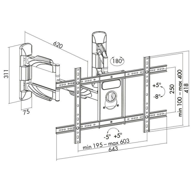 | Other features | Space-saving construction Suitable for 3770" monitors Weight capacity: 45 kg max. Mounting type: Wall mounting Tilt: -8°/+5°, swivel: -90°/90°, front panel rotatable: -5°/+5° VESA compatibility: 200x200, 300x200, 300x300, 400x200, 400x300, 400x400, 600x40 |