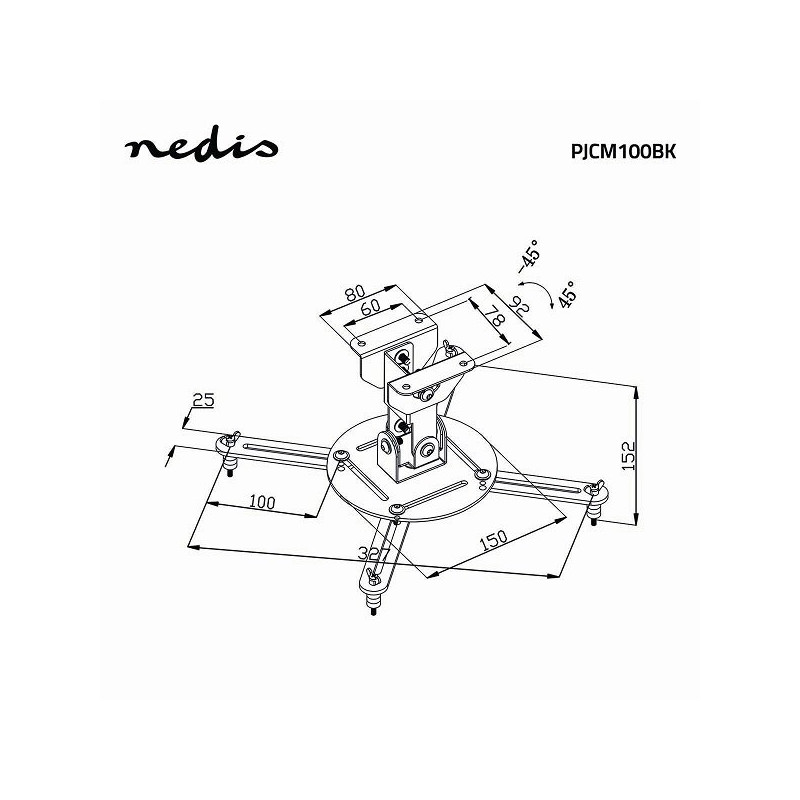 Nedis PJCM100BK Projector Ceiling Mount 360 ° Max 10kg