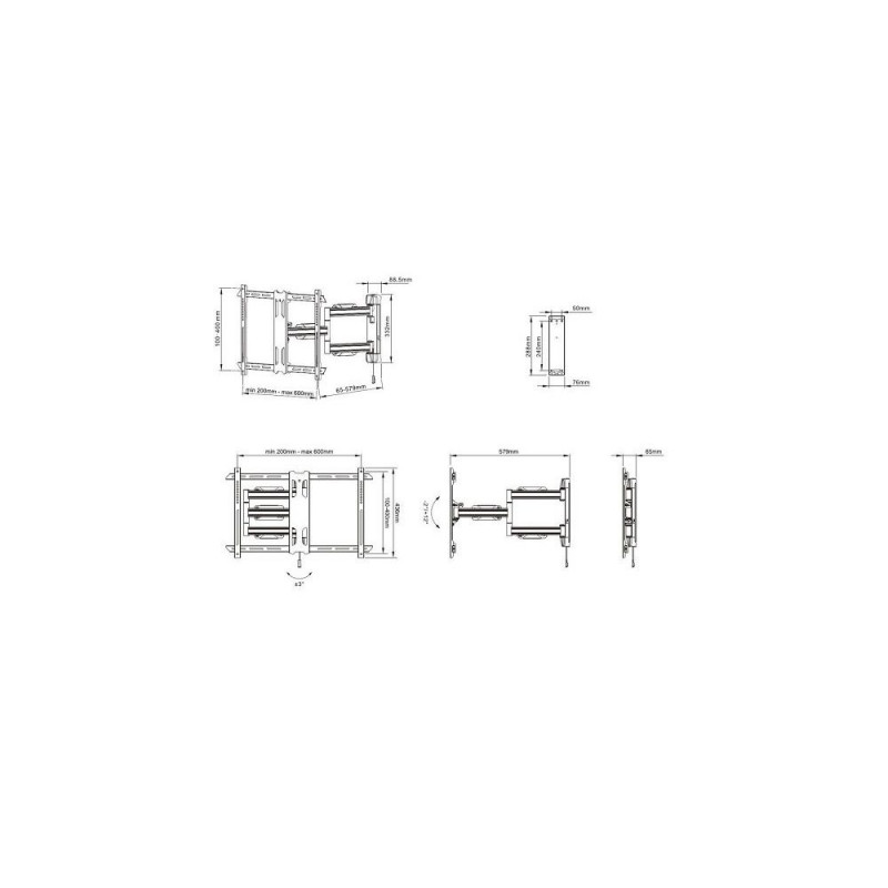 For screen size: 40-70" VESA standard: 200x200, 300x200, 300x300, 400x200, 400x400, 600x400 mm Tilt: -2° ~ +12° Rotatable: + 90 ° ~ -90 ° Screen level +5° ~ -5° Distance to the wall: 47-561 mm Maximum load: 40 kg Net weight: 6.80 kg Size mm: 736x369xOsta kohe, viimased eksemplarid laos!