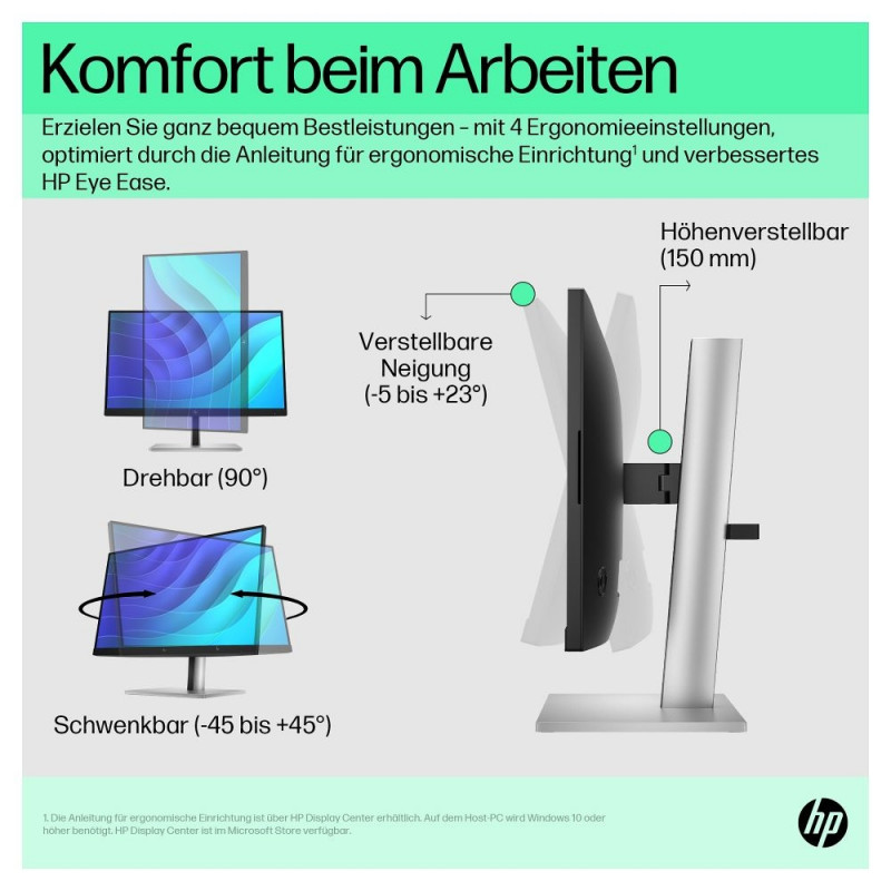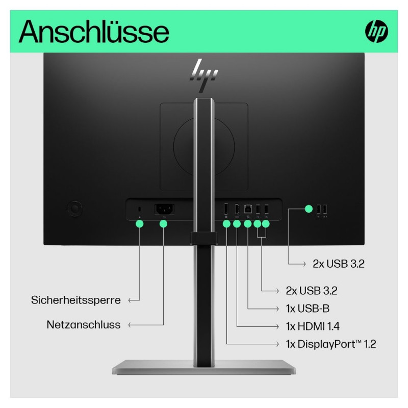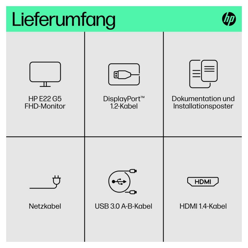 | Packungsinhalt | Monitor; DisplayPort™ cable; HDMI cable; Warranty card; USB Type-B to A cable; Quick Setup Poster; AC power cord |