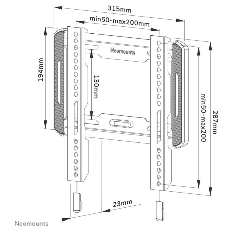 Neomounts WL30-550BL12 teleriseinakinnitus 24–65" – üliõhuke – lihtne paigaldus. Maksimaalne kandevõime: 40 kg, minimaalne ekraanisuurus: 61 cm (24"), maksimaalne ekraanisuurus: 165,1 cm (65"), minimaalne VESA kinnitus: 50 x 50 mm, maksimaalne VESA kinnitus: 200 x 200 mm. Maksimaalne kaugus seinast: 2,3 cm. Toote värvus: must.