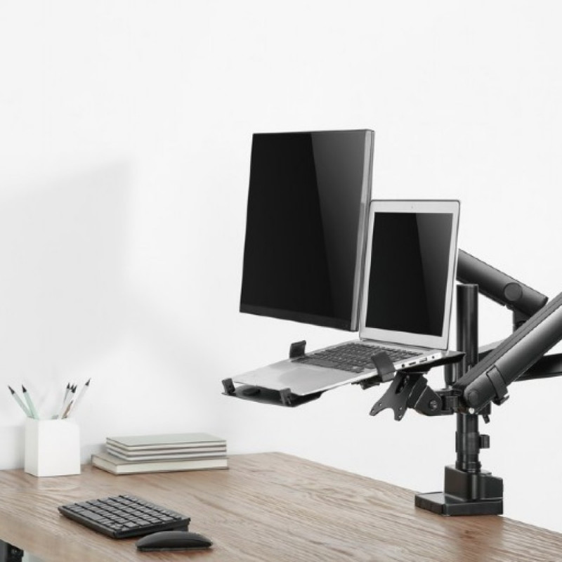 Reguleeritav lauakinnitusega monitorihoidik sülearvutialusega (täielik liikumisvabadus)