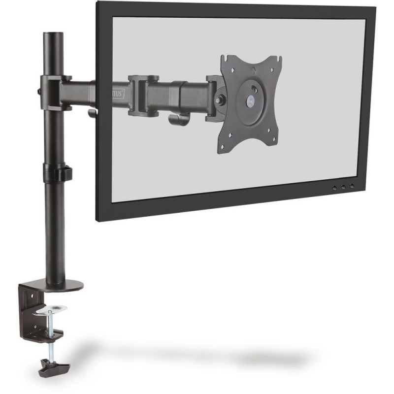 Digitus ühe monitori hoidik, 27", 8 kg. Kinnitus: klamber, maksimaalne kaalukoormus: 8 kg, minimaalne ekraani suurus: 38,1 cm (15"), maksimaalne ekraani suurus: 68,6 cm (27"), minimaalne VESA kinnitus: 75 x 75 mm, maksimaalne VESA kinnitus: 100 x 100 mm. Kallutusnurkade vahemik: -45 – 45°. Toote värvus: must.