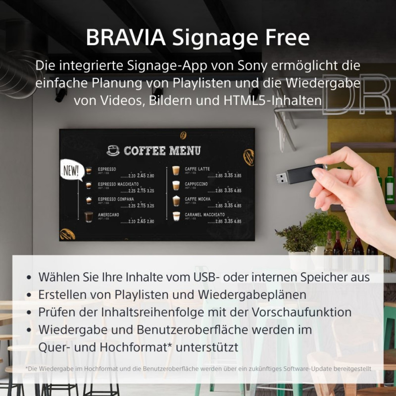 | Technologie mit hohem Dynamikbereich (HDR) | High Dynamic Range 10 (HDR10), Hybrid Log-Gamma (HLG) |