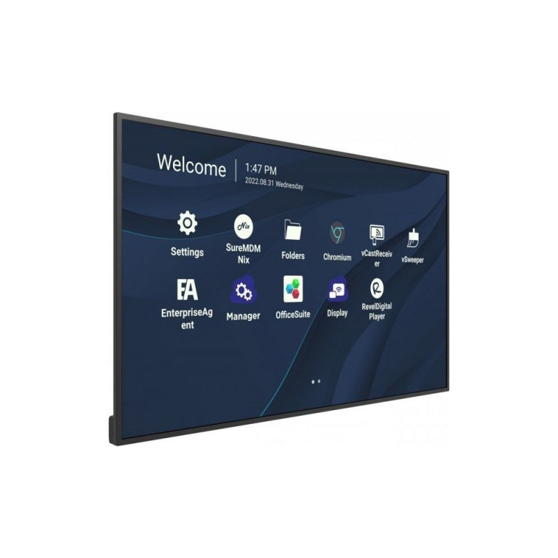 Viewsonic CDE4330. Ekraani diagonaal: 109,2 cm (43"), ekraani resolutsioon: 3840 x 2160 pikslit, heledus: 450 cd/m², HD-tüüp: 4K Ultra HD. WLAN. Paigaldatud operatsioonisüsteem: Android 11. Toote värvus: must.