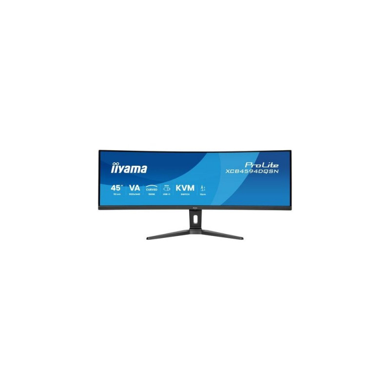 The XCB4594DQSN features a 1500R curved VA panel with a 165Hz refresh rate, 0.8ms MPRT, and a 5120x1440 (DQHD) resolution for superb image quality. The KVM switch allows you to connect multiple computers that can be operated over one console (monitor, keyboard, mouse). The USB-C dock simplifies setup with one cable for laptop signal transmission, power, and charging. Connecting to the Internet via LAN automatically links your notebook to the network. The VA panel ensures expansive viewing angles and vivid colours, and the 1500R curvature minimizes eye strain for a lifelike and fully immersive gaming experience. The dual QHD resolution provides sharp visuals, and the height-adjustable stand adds a comfortable and highly ergonomic experience.iiyama G-MASTER 45’’ Dual QHD VA panel with KVM switch, USB-C dock and RJ45 (LAN) and height adjustable stand. Display diagonal: 114.3 cm (45"), Display resolution: 5120 x 1440 pixels, HD type: Dual QHD, Display technology: LED, Display surface: Matt, Response time: 0.8 ms, Native aspect ratio: 32:9, Viewing angle, horizontal: 178°, Viewing angle, vertical: 178°. Built-in speaker(s). Built-in USB hub, USB hub version: 3.2 Gen 1 (3.1 Gen 1). VESA mounting, Height adjustment. Product colour: Black