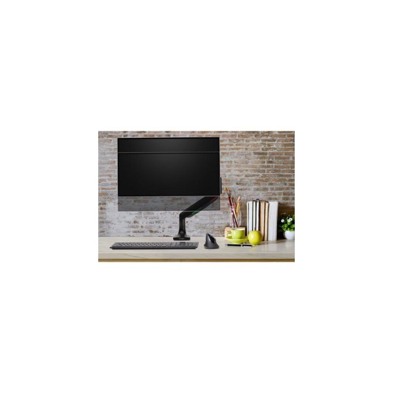 Incorrect monitor placement can lead to poor posture, eye strain, as well as neck, back and shoulder discomfort. The SmartFit™ One-Touch Height Adjustable Single Monitor Arm supports more comfortable monitor placement. Thoughtfully designed to simplify proper ergonomic fit, it offers a fully-articulating design for maximum flexibility. A heavy duty build provides stability in every position while its gas spring monitor mount makes adjusting the height, depth and angle of your monitor effortless - from landscape to portrait mode. The built-in cable management system organises and conceals cables while the arm lifts your external monitor up and out of the way, decluttering and clearing valuable desk space.Kensington SmartFit One-Touch Height-Adjustable Single Monitor Arm. Mounting: Clamp, Maximum weight capacity: 9 kg, Minimum screen size: 33 cm (13"), Maximum screen size: 86.4 cm (34"), Minimum VESA mount: 75 x 75 mm, Maximum VESA mount: 100 x 100 mm. Height adjustment, Tilt angle range: -90 - 90°. Product colour: Black