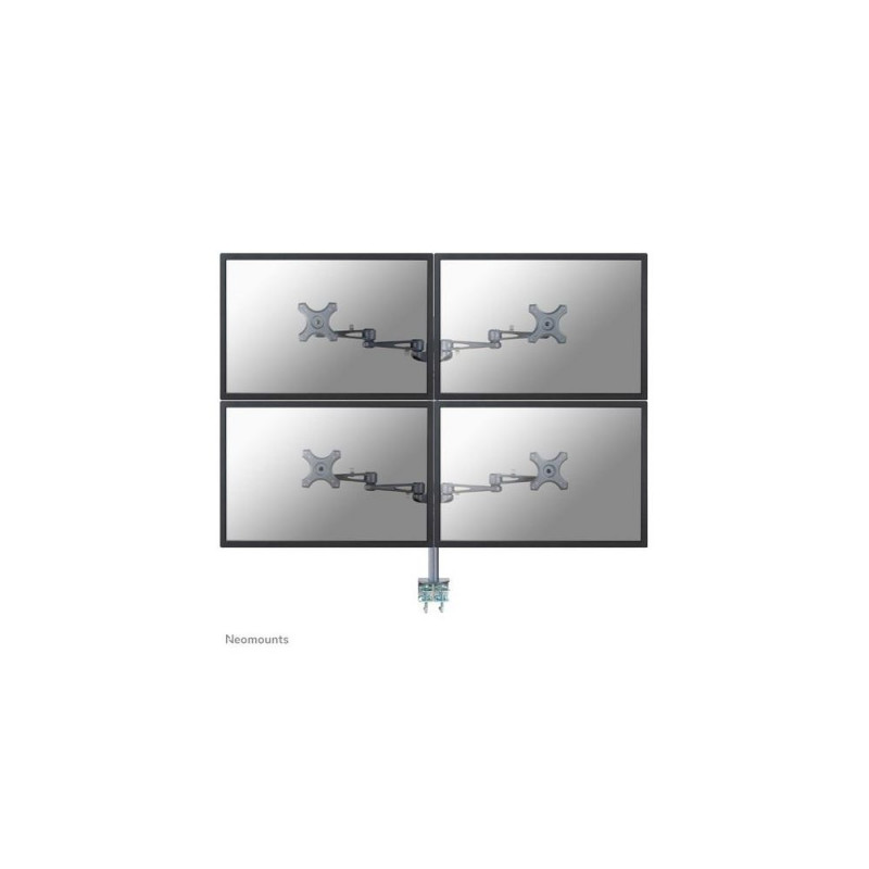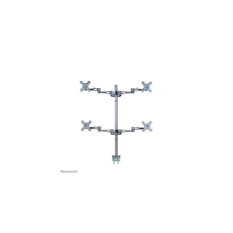 The Neomounts desk mount, model FPMA-D935D4 is a tilt-, swivel and rotatable desk mount for 4 flat screens up to 27". This mount is a great choice for space saving placement on desks using a desk clamp.<br><br>Neomounts versatile tilt (180°), rotate (360°) and swivel (300°) technology allows the mount to change to any viewing angle to fully benefit from the capabilities of the flat screen. The mount is manually height adjustable from 0 to 80 centimetres. Depth adjustable from 12 to 50 centimetres. An innovative cable management conceals and routes cables from mount to flat screen. Hide your cables to keep the workplace nice and tidy.<br><br>Neomounts FPMA-D935D4 has three pivot points and is suitable for screens up to 27" (69 cm). The weight capacity of this product is 6 kg each screen. The desk mount is suitable for screens that meet VESA hole pattern 75x75 or 100x100mm. Different hole patterns can be covered using Neomounts VESA adapter plates.<br><br>By using an ergonomic mount neck- and back complaints can be avoided. Ideal for use in offices and on counters or in a reception area.<br><br>All installation material is included with the product.Neomounts FPMA-D935D4 Monitor arm 10-27". Mounting: Clamp, Maximum weight capacity: 6 kg, Minimum screen size: 25.4 cm (10"), Maximum screen size: 68.6 cm (27"), Minimum VESA mount: 75 x 75 mm, Maximum VESA mount: 100 x 100 mm. Height adjustment, Swivel angle range: 0 - 300°, Tilt angle range: 0 - 180°. Product colour: Silver
