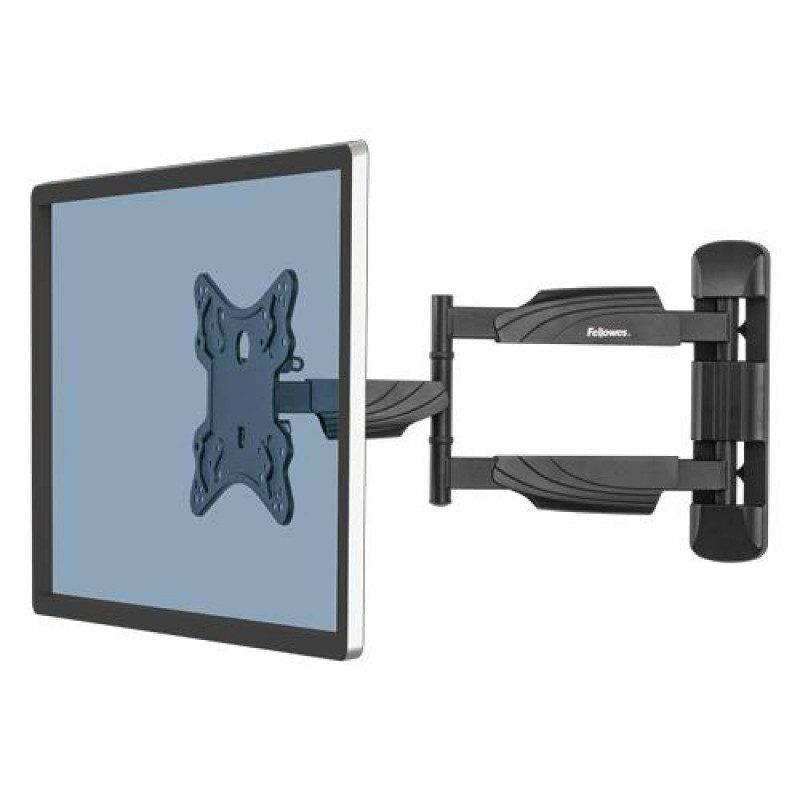 Fellowes Full Motion LCD/LED/TV Wall Mount allows for tilt, swivel and levelling adjustment. Its detachable design allows for quick removal and the ability to combine extension arms for extended reach and articulation. With built in cable management and capability of holding screens 23"-55" and up to 35kgs. Specifications: +5/-5° Rotation +2°/ -12° Tilt +/- 90° Pan. VESA 100x100, 100x150, 200x100, 200x200, 400x200, 300x300, 400x400, 400x300, 300x200 compliant.<br>Fellowes Full Motion TV Wall Mount. Maximum weight capacity: 35 kg, Minimum screen size: 58.4 cm (23"), Maximum screen size: 139.7 cm (55"), Minimum VESA mount: 100 x 100 mm, Maximum VESA mount: 400 x 400 mm. Tilt angle range: -12 - 2°. Product colour: Black