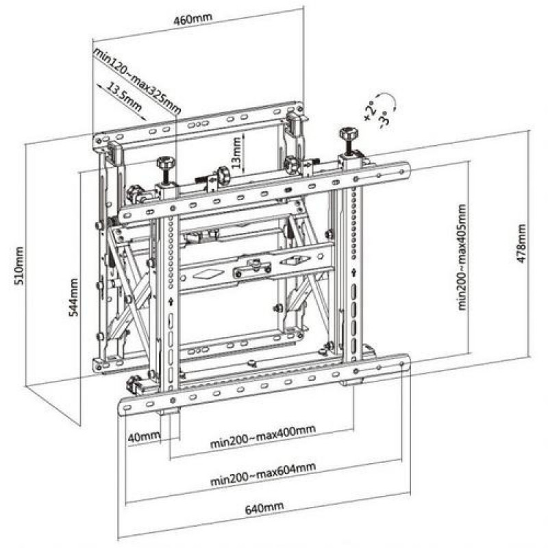 The equip® 650352 Video Wall TV Mount Bracket is a video wall solution quick to install, and easy to configure. Made especially for video wall applications. This is a professional mount focusing on multiple screen installations, easy and fast installation and simplified maintenance. The Pop-out feature gives easy-access to any display for quick serviceability. This is one of the major functions needed when building a video wall mounting solution or when integrating a single screen into the wall. Saving installation time and cost<br>Equip 45"-70" Pop-Out Video Wall Mount Bracket. Maximum weight capacity: 70 kg, Minimum screen size: 114.3 cm (45"), Maximum screen size: 177.8 cm (70"), Maximum VESA mount: 600 x 400 mm. Tilt angle range: -3 - 2°. Product colour: Black