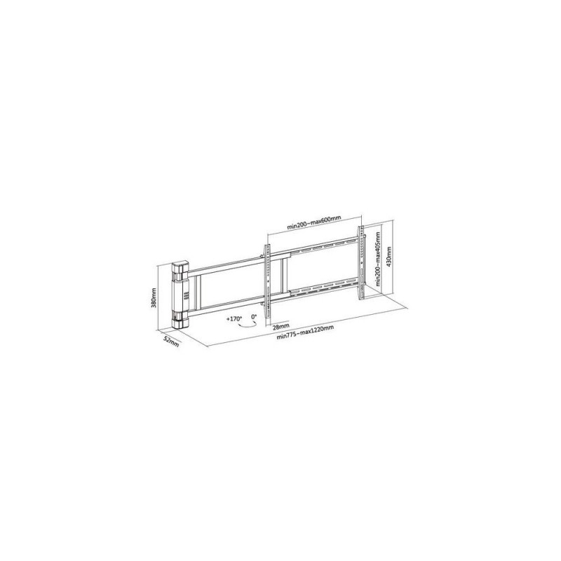 The equip 650336 Motorized TV wall bracket was created to give you the perfect viewing angle no matter where you mount your TV; have the freedom to mount your TV in the perfect spot and sit where you want all with the press of a button. Perfect for open floor concept layouts, studio apartments, small rooms, and much more. Fits TVs between 32" - 75". It's includes a remote control that has memory settings and swings open your TV up to 170°.<br>Equip 32"-75" Motorized TV Swing Mount Bracket. Maximum weight capacity: 50 kg, Minimum screen size: 81.3 cm (32"), Maximum screen size: 190.5 cm (75"), Minimum VESA mount: 200 x 200 mm, Maximum VESA mount: 600 x 400 mm. Product colour: Black