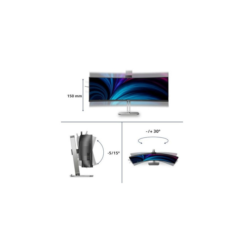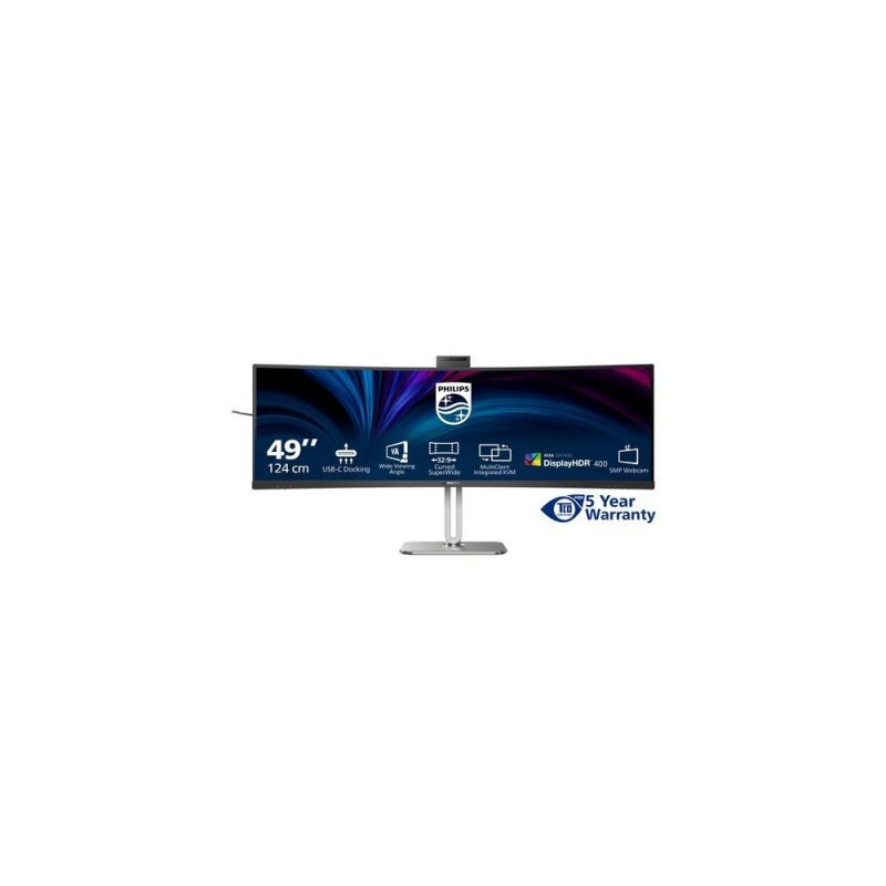 Welcome to a more efficient workspace. To facilitate everyday workflow, this monitor's large 32:9 SuperWide screen is equipped with a new busy light and tilting webcam feature that helps you flow between tasks with ease.Philips 5000 series 49B2U5900CH/00. Display diagonal: 124 cm (48.8"), Display resolution: 5120 x 1440 pixels, HD type: Dual QHD, Display technology: LCD, Response time: 4 ms, Native aspect ratio: 32:9, Viewing angle, horizontal: 178°, Viewing angle, vertical: 178°. Built-in speaker(s). Built-in USB hub, USB hub version: 3.2 Gen 1 (3.1 Gen 1). VESA mounting, Height adjustment. Product colour: Black