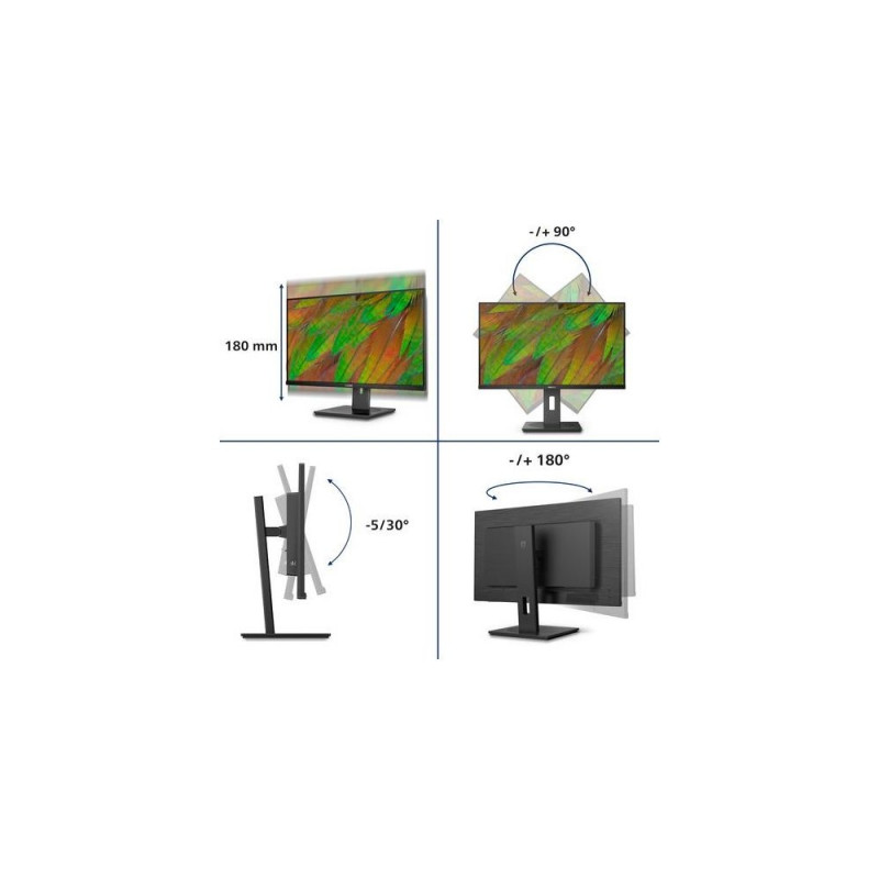 This 32-inch monitor showcases beautiful imagery in 4K resolution and a 1.074 billion color gamut. In addition, its DisplayPort connectivity and VA panel make for a great all-around option for your workspace.Philips 3000 series 32B1N3800/00. Display diagonal: 81.3 cm (32"), Display resolution: 3840 x 2160 pixels, HD type: 4K Ultra HD, Display technology: LCD, Response time: 4 ms, Native aspect ratio: 16:9, Viewing angle, horizontal: 178°, Viewing angle, vertical: 178°. Built-in speaker(s). Built-in USB hub, USB hub version: 3.2 Gen 1 (3.1 Gen 1). VESA mounting, Height adjustment. Product colour: Black