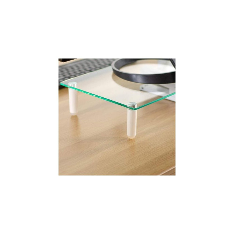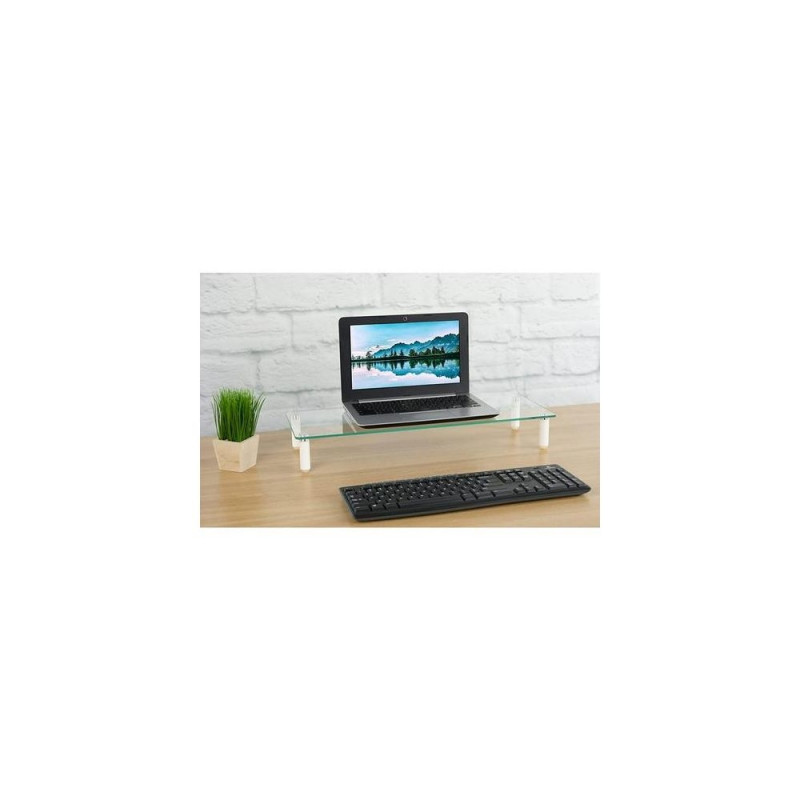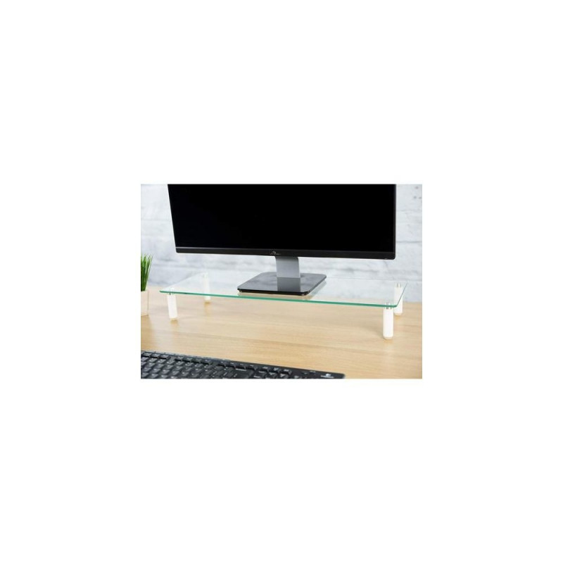 - Raises monitor to a more comfortable viewing position and helps to reduce neck and eye strain<br>- Flat work surface provides storage space for holding task-related items<br>- Expands your work area upward, maximizing your available work area, creates additional horizontal surface under the monitors to store your laptop, keyboard or other office related document or accessories<br>- Suggested Screen Size: 13-32"<br>- Max load: 20 kg<br>- Anti-slip silicone pads offer additional stable to hold your valued monitor<br>- Simple construction allows fast installation<br>- Material: Steel, Plastic, Glass<br>- Product Size: 560 x 210 x 80 mm<br>- Glass Thickness: 5 mm<br>- Color: whiteTechly Universal Tabletop Monitor Riser. Mounting: Freestanding, Maximum weight capacity: 20 kg, Minimum screen size: 33 cm (13"), Maximum screen size: 81.3 cm (32"). Product colour: Transparent