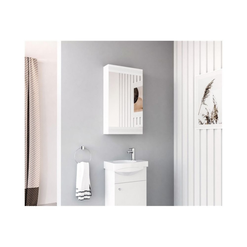 See stiilne ja praktiline vannitoakapp SV40 valges värvitoonis on suurepärane lisa igale vannitoale. Kaasaegne disain ja funktsionaalsus teevad sellest ideaalse lahenduse teie vannitoa asjade hoiustamiseks.
