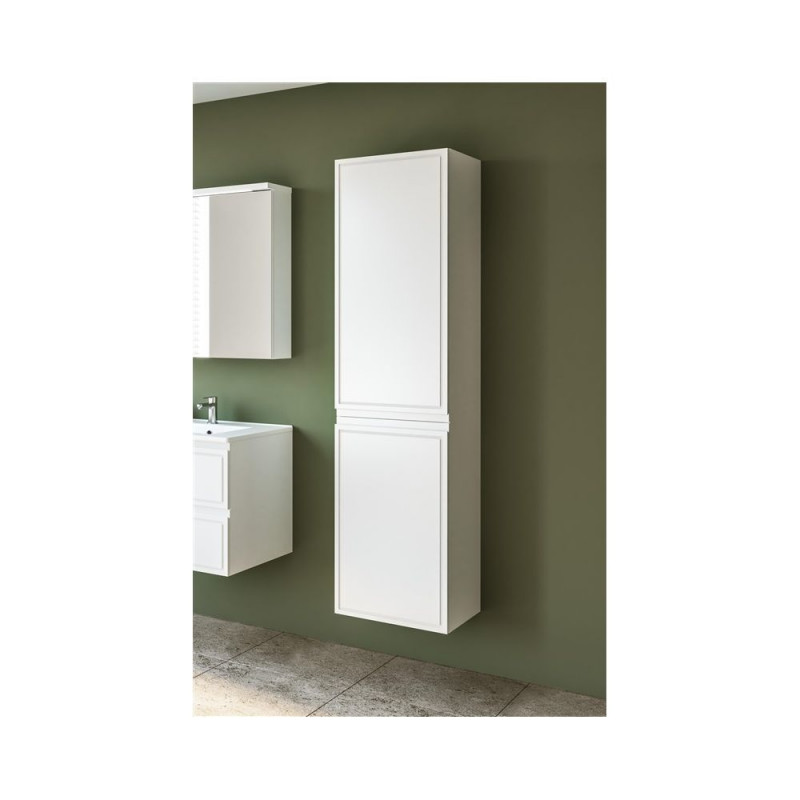 Kapi uksed avanevad sujuvalt ning on varustatud kvaliteetsete hingedega, mis tagavad pikaajalise kasutusmugavuse. Kapi kompaktne suurus võimaldab selle paigaldada ka väiksematesse vannitubadesse, ilma et see võtaks liigselt ruumi. Kapi neutraalne värvilahendus muudab selle sobivaks nii heledatesse kui ka tumedatesse interjööridesse.