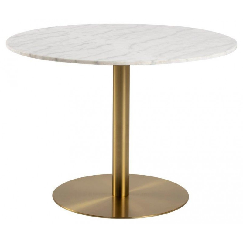*Ümar söögilaud Ø105 cm *lauaplaat on valmistatud marmorplaadist *viimistlus: Guanxi valge marmor/messing *karkass on metallist, viimistletud kuldse kroomiga