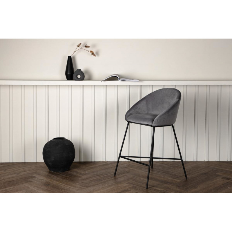 Baaritooli disain on pehme, kuid samas minimalistlik ning sobib suurepäraselt paljudesse interjööridesse. Tool on kaetud pehme halli sametkangaga, mis lisab mugavust. Minimalistlikud metalljalad musta pulbervärviga kate tagavad pika kasutusea ja efektse välimuse.