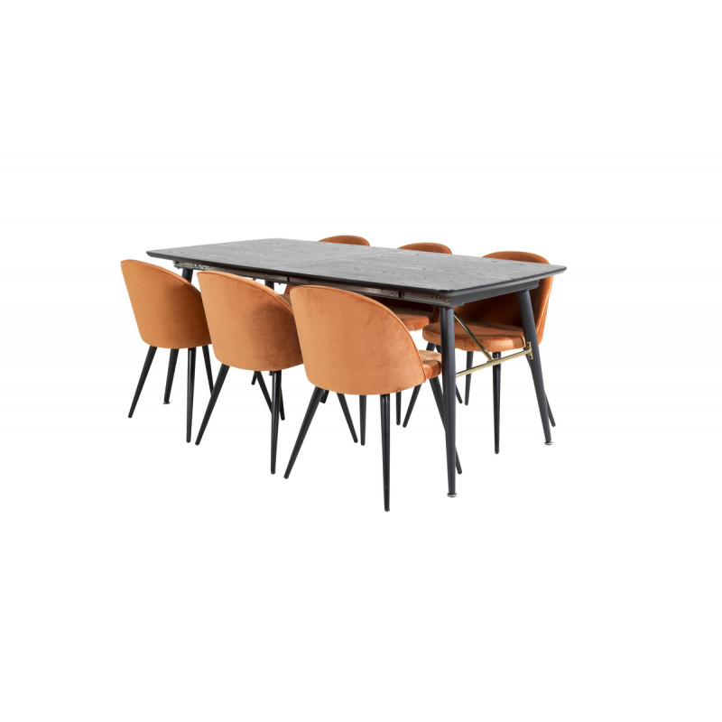 Võluv ja kvaliteetne söögitoa komplekt teie koju! Söögotoa komplekti Gold kuulub pikendatav söögilaud ja 6 tooli Velvet seeriast. Naudi pikki õhtusööke ja meeldivat seltskonda mugavalt istudes!
