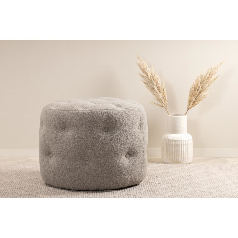 Sisusta oma kodu nutikalt ja stiilselt! Benjamin karvasest riidest on silindrikujuline, määrdunudvalge värvi multifunktsionaalne tumba dekoratiivsete sügavõmmeldud ja kaetud nööpidega, mis loovad elegantse ülddisaini.