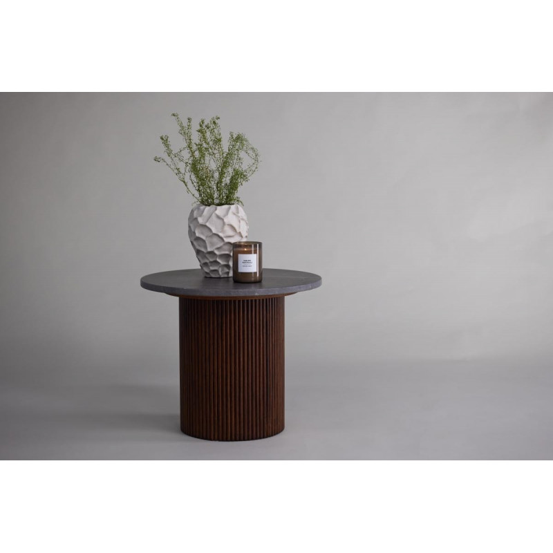 Abilaud Härön on ainulaadse disainiga, milles on hõrk MDF-i ja tuha kombinatsioon! See abilaud kuulub kollektsiooni Vind ning sellel on silindrikujuline raam ribilisest tumepruunist puidust ja ümar lauaplaat hallist MDF-st, mis annab pilgupüüdjale imelise elu.