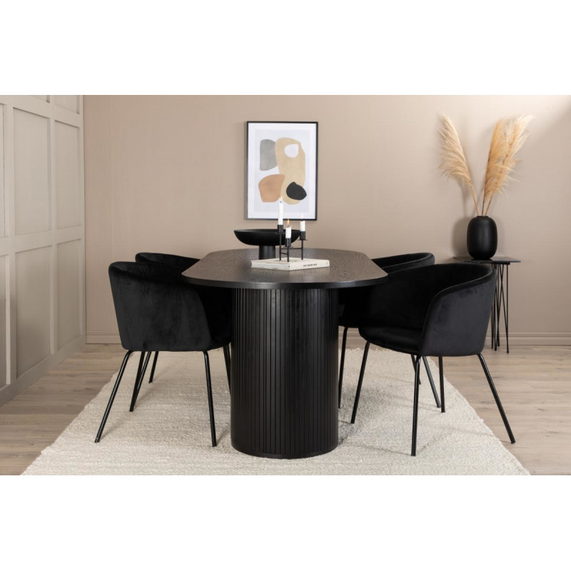 Võluv ja kvaliteetne söögitoa komplekt teie koju! See sisaldab stiilset söögilauda ja toole, mis sobituvad suurepäraselt nii kaasaegsesse kui ka klassikalisesse interjööri.