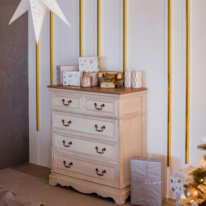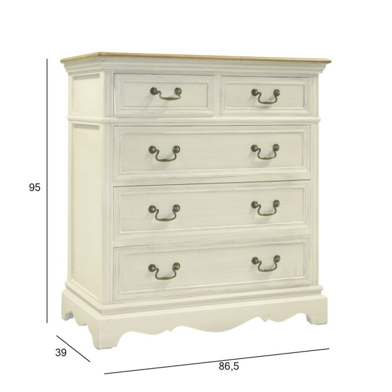 Kummut SAMIRA 86,5x39xH95cm, antiikvalge/naturaalne