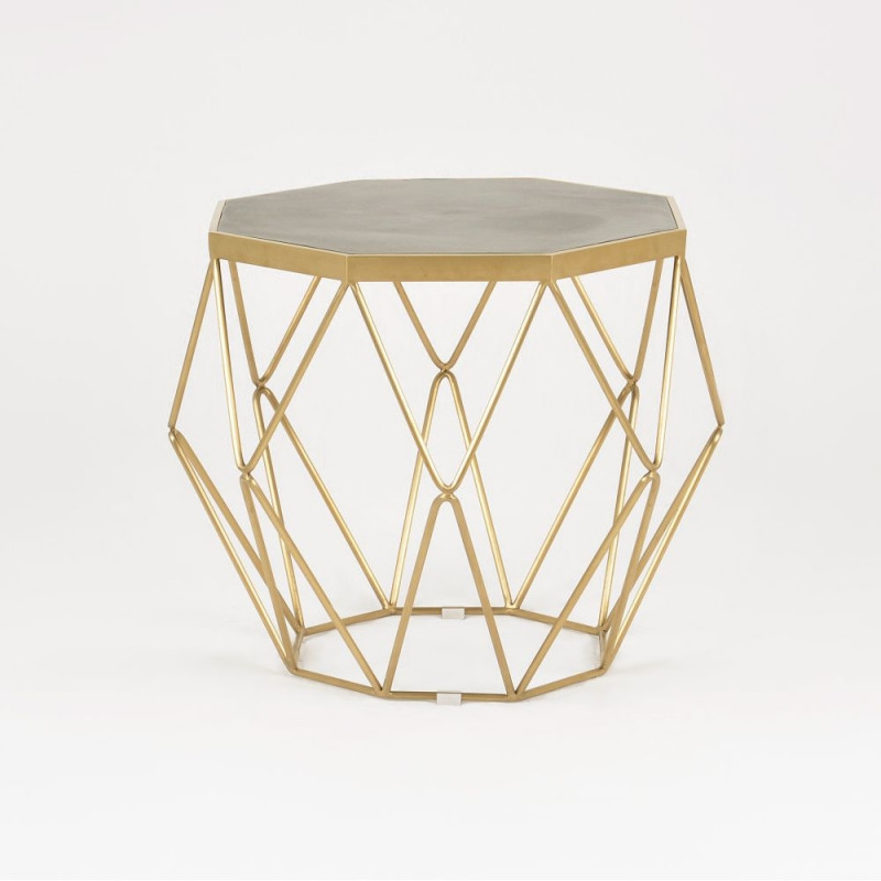 - Elegantne abilaud, mille geomeetriline raam on valmistatud roostevabast terasest ja viimistletud kuldse glamuuriga modernses stiilis.