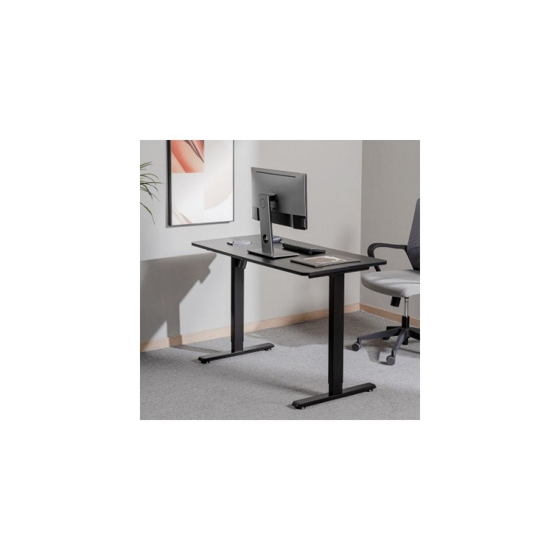 Ergonomic tables "Up Up" are a great choice for your workplace. Thanks to the height-adjustable, you can adjust the height of the table to yourself and constantly change position and work both sitting and standing. What are the benefits? Desk frame and table top are packed in one box. Better concentration at work - the changing situation allows you to remain more vigilant and work more efficiently. Health - Everyone knows that doctors recommend changing the position of the body while working on a computer. It is very helpful in removing the load from the spine, improving blood circulation, and lifting the mood. Quality guarantee. The table frames are made of durable steel, which will definitely withstand constant loads. Frames and mechanisms have a 5-year warranty. Modern design. Height-adjustable tables "Up Up" are a long-term investment in employee health, dynamic atmosphere, and modern design. Collision Avoidance System: safeguards against accidents and injuries when moving up and down PRODUCT CATEGORY: Electric Sit-Stand desk RANK: Standart MATERIAL: Particle Board & Melamine,Aluminum,Plastic,Steel DIMENSIONS (WXHXT): 1200 x 600 x 730 ~ 1180 mm TABLETOP THICKNESS: 18 mm (0.71") WEIGHT CAPACITY: 70 kg WIDTH: 1200 mm HEIGHT EANGE: 730 ~ 1180 mm COLUMN DESIGN: Standard column COLUMN SEGMENTS: Two stage column COLUMN SIZE: 70x40mm 75x45mm LEG QUANTITY: 2 FRAME COLOR: Black ADJUSTABLE FEET PAD: Yes MAX. SPEED 25 mm/s CONTROLLER TYPE: 2 keys Button Control Panel TIME REMINDER: No SUGGESTED OPERATING TEMPERATURE: -5 ℃ ~ 40 ℃ TABLETOP FEATURES: PRODUCT CATEGORY: Desk board RANK: Standart MATERIAL: Eco-friendly Particle Board TABLETOP SIZE(LXWXT): 1200 x 600 x 18 mm COLOR: Black