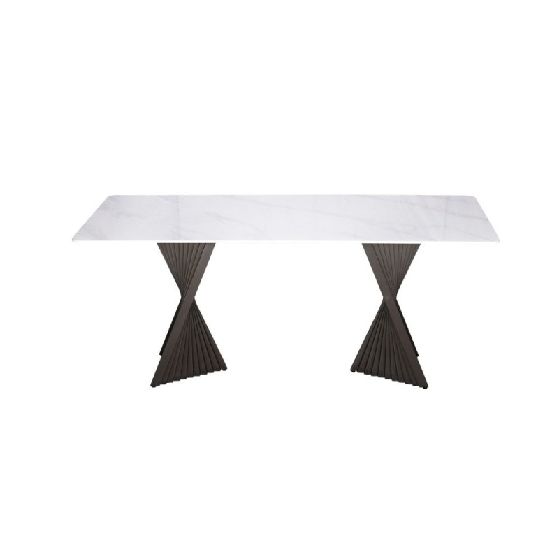 - Originaalne laud ventilaatorikujulise roostevaba aluse ja marmor mustrilise valge plaadiga.