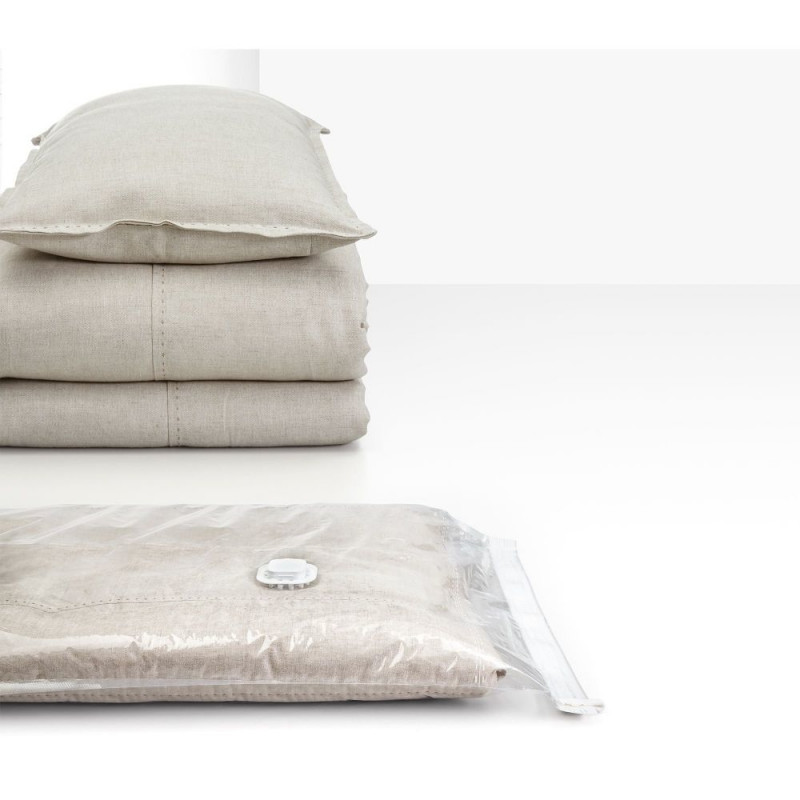 The Rayen Basic Vacuum Bag Set M + L allows you to save up to 75% of space when storing clothes and textiles. The airtight zipper and double air valve ensure reliable protection against dust, moisture, and odors. Ideal for seasonal garments, bedding, and soft textiles.