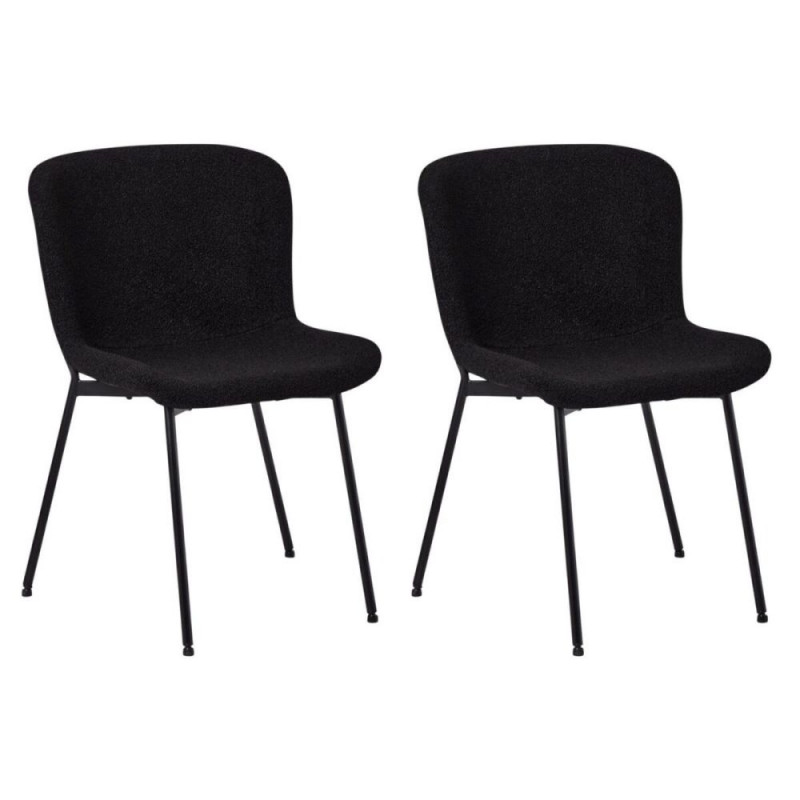 Mugav söögitool TEDDY on kaetud pehme musta bouclé kangaga ja varustatud tugevate mustade metalljalgedega. Tool pakub suurepärast istumismugavust tänu vahust polsterdusele. Mõõdud 61×52×80 cm. Istme kõrgus 49 cm, sügavus 39 cm ja laius 48 cm. Seljatoe kõrgus 39 cm. Maksimaalne kandevõime 130 kg.