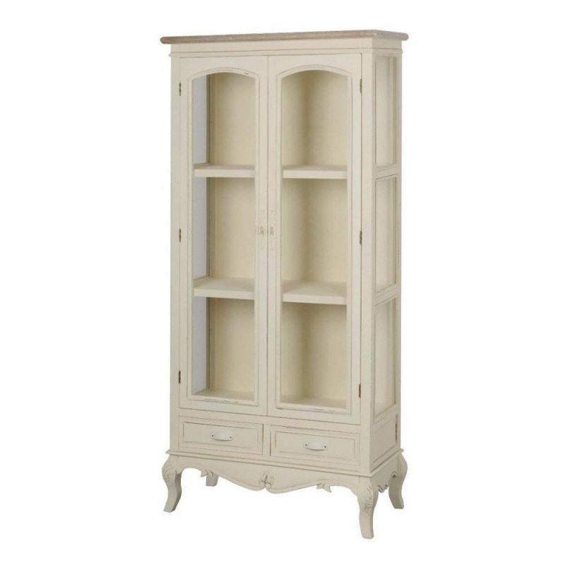 Elegantne Provence'i stiilis vitriinkapp kreemjas korpuse ja helepruuni MDF-ülaosaga. Kapil on kaunid kõverdatud jalad ning metallist käepidemed. Kapp on varustatud 2 sahtli ja 2 uksega, mis on kaunistatud klaasist paneelidega. Uste taga on 2 riiulitasapinda, mis pakuvad piisavalt ruumi esemete paigutamiseks. Mõõdud: 76 x 35 x 156 cm.
