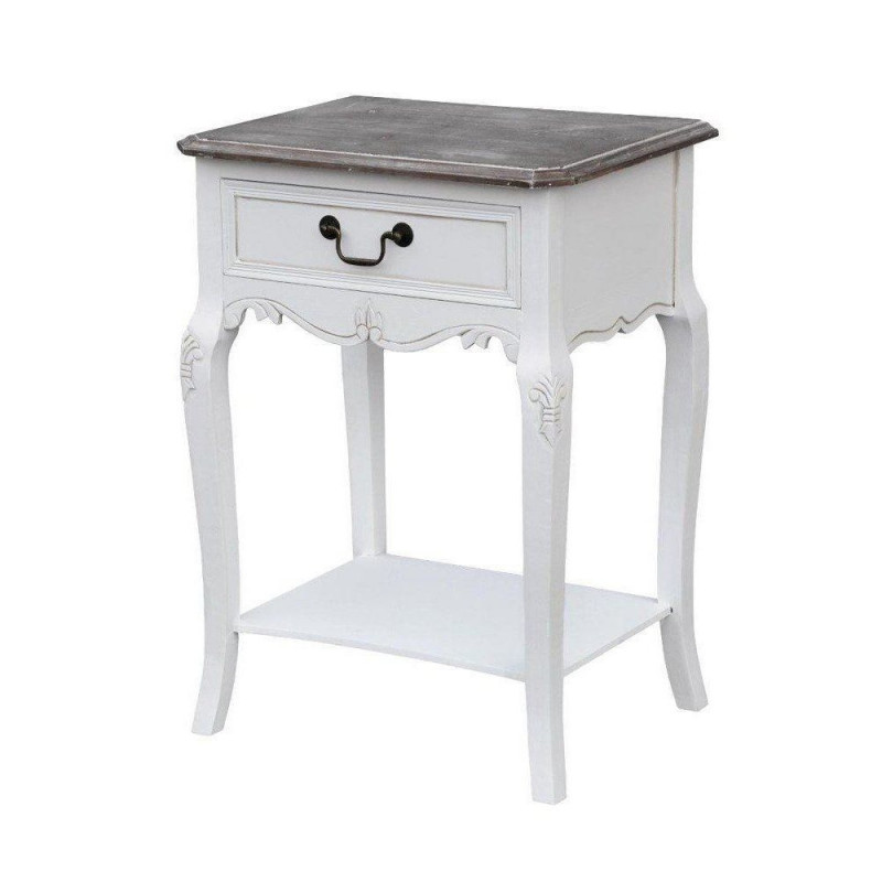 Elegantne Provence'i stiilis öökapp valgete ornamentide ja tumepruuni ülaosaga. Kapil on kaunid painutatud jalad, metallist käepidemed ja üks sahtel pehme sulgumise mehhanismiga ning üks avatud riiul. Mõõdud: 47 x 36 x 70 cm.
