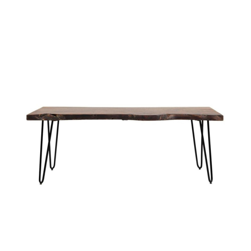 Tööstuslik söögipink pähklitooni akaatsiapuidust lauaplaadi ja naturaalse ebakorrapärase kujuga, mida toetavad rauast juuksenõela stiilis jalad. See loob mööbliesemele elegantse ja ajatu välimuse, sobitudes suurepäraselt erinevatesse sisekujundusstiilidesse. Jalad on metallist, kaetud musta pulbervärviga. Mõõdud: 122 x 41 x 46 cm.