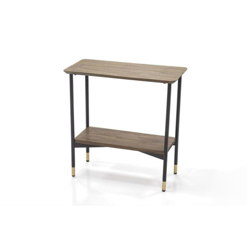 Originaalne täispuidust abilaud retrostiilis, valmistatud kvaliteetsest harjatud akaatsiapuidust ning täiendatud sirgete metallist jalgadega. Jalad on mustades toonides kuldsete aktsendiga, mis loob elegantse ja ajatu välimuse. Laual on üks praktiline riiul hoiuruumi jaoks. Mõõdud: 60 cm x 30 cm x 60 cm.