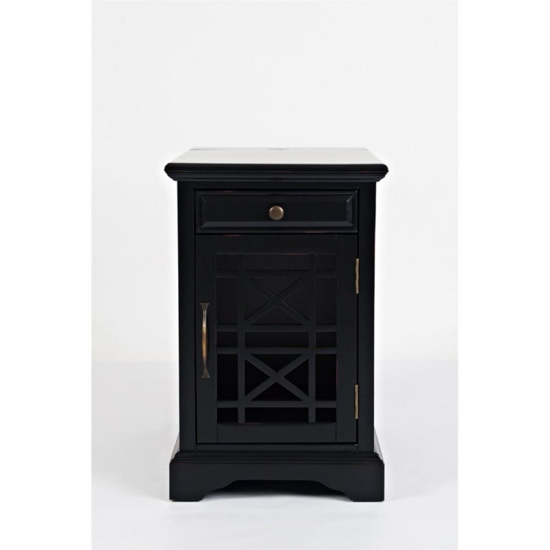 Stiilne must öökapp elegantse disainiga ja praktiliste funktsioonidega. Valmistatud kvaliteetsest MDF-materjalist ja kaunistatud naturaalse akaatsia spooniga. Öökapil on üks klaasuks dekoratiivsete liisteudega ja üks sahtel pehme sulgumise mehhanismiga. Käepidemed on roostevabast terasest. Mõõdud: 41 cm laius, 56 cm sügavus, 64 cm kõrgus.