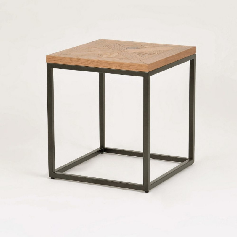 Kvaliteetne loft-stiilis abilaud, mis on paigaldatud vastupidavale teraskonstruktsioonile. X-kujulise detailiga lauaplaat on valmistatud valgest tamme täispuidust naturaalse värviga. Jalad on metallist, kaetud tumeda grafiit värvi pulbervärviga. Mõõdud: 45 x 45 x 50 cm.