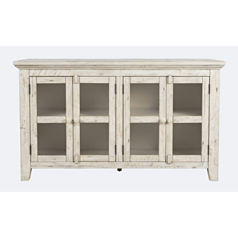 Maalähedases elevandiluu toonis puhvetkapp karakteristlike vananevate ja dekoratiivsete liistudega. Kummutil on klaasuksed ning freesitud pealispind. Valmistatud naturaalsest akaatsiapuidust, mis lisab mööblile elegantsi ja stiili ning sobib harmooniliselt igasse interjööri. Kummutil on 4 klaasukse, mille taga on 2 riiulit. Käepidemed on samuti valmistatud akaatsiapuidust ja viimistletud elevandiluu tooniga. Mõõdud: 137 x 38 x 81,5 cm.