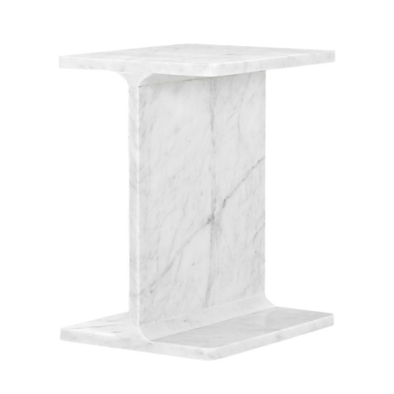 Minimalistlik abilaud, mis on täielikult valmistatud marmorist ja rõhutab oma elegantse ning ajatu disainiga naturaalse kivi ilu. Konstruktsiooni sümmeetriline disain ja lihtne kuju toovad esile loodusliku kivi kauni tekstuuri, samas kui tööpinna ümarad servad lisavad üldisele vormile kergust ja õhulisust. See loob mööbliesemele elegantse ja ajatu välimuse, sobitudes suurepäraselt erinevatesse sisekujundusstiividesse. Mõõdud: 30,5 x 38 x 46 cm.