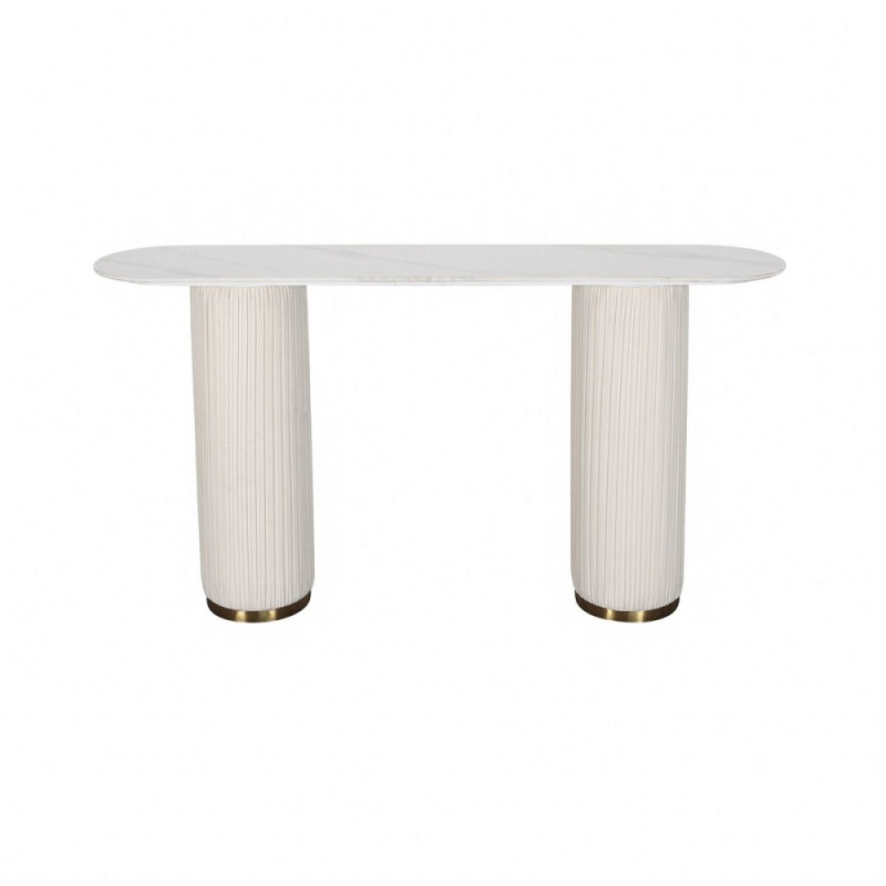 Kaasaegne konsoollaud kahe massiivse jalaga ja ümmarguse alusega, mis on kaetud ökonahaga ning loob vertikaalseid volte kuldse aktsendiga. Ovaalne valge lauaplaat jäljendab marmori tekstuuri. Mõõdud: 160 x 35 x 85 cm.