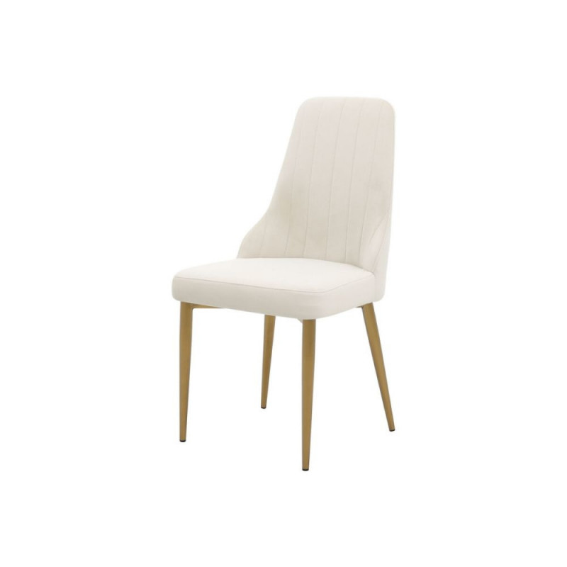 Glamuurne polsterdatud söögitool kuldsete harjatud terasjalgade ja pehme valge sametiga, mis lisab igale söögitoale elegantsi ja luksuslikku stiili. Toolil on mugav sametine iste ja seljatugi ning kuldsed metallist jalad. Mõõdud: laius 51 cm, sügavus 60 cm, kõrgus 89 cm.