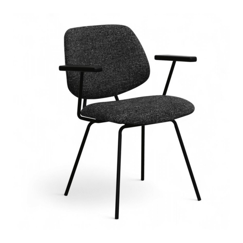 SOFIA söögitool käetugedega on mugav ja stiilne lahendus söögituppa. Tooli iste ja seljatugi on kaetud pehme musta bouclé kangaga ning täidetud vahtplastiga. Tugevad metallist jalad tagavad stabiilsuse ja vastupidavuse. Käetuged pakuvad lisamugavust ning disain peegeldab skandinaavia, tööstuslikku ja Japandi stiili. Mõõtmed: 58x50x82 cm. Istme kõrgus: 49 cm, laius: 49 cm, sügavus: 43,5 cm. Käetoe kõrgus: 67 cm, seljatoe kõrgus: 33 cm, jalgade kõrgus: 44 cm.